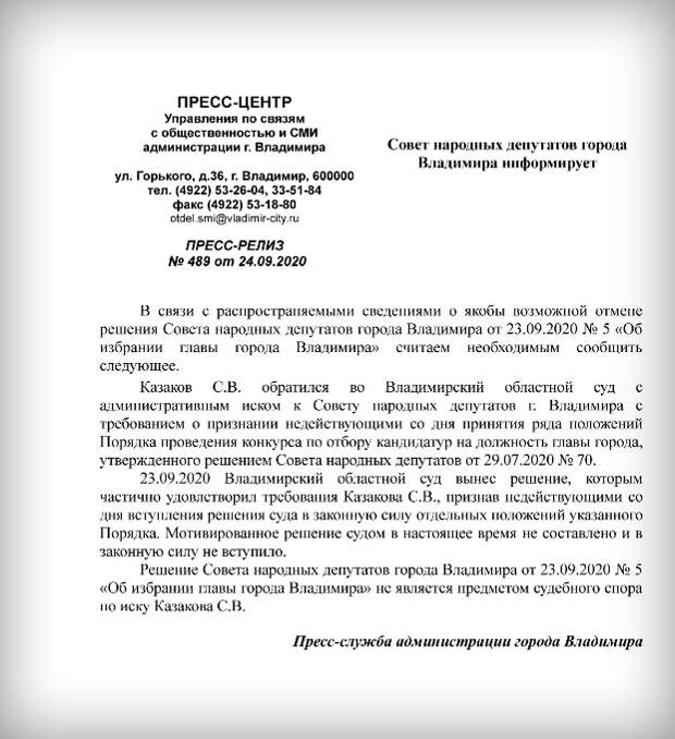 На основе такого решения суда депутат ЗакСобрания Казаков не исключил, что следующим правовым шагом по юридической логике должна стать отменена всей процедура выборов главы города Владимира, ведь если незаконна часть, то и целое тоже не может считаться полностью легитимным. По всей видимости готовится следующий иск. Но команда Шохина не стала сдаваться и сразу же дала «ответочку».